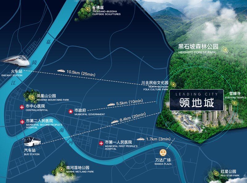 背靠黑石坡森林公园,面朝南河,周边红星公园环伺,自然景观资源丰富 。社区内以健康理念打造功能模块,兼具自然宜居与康养氛围。