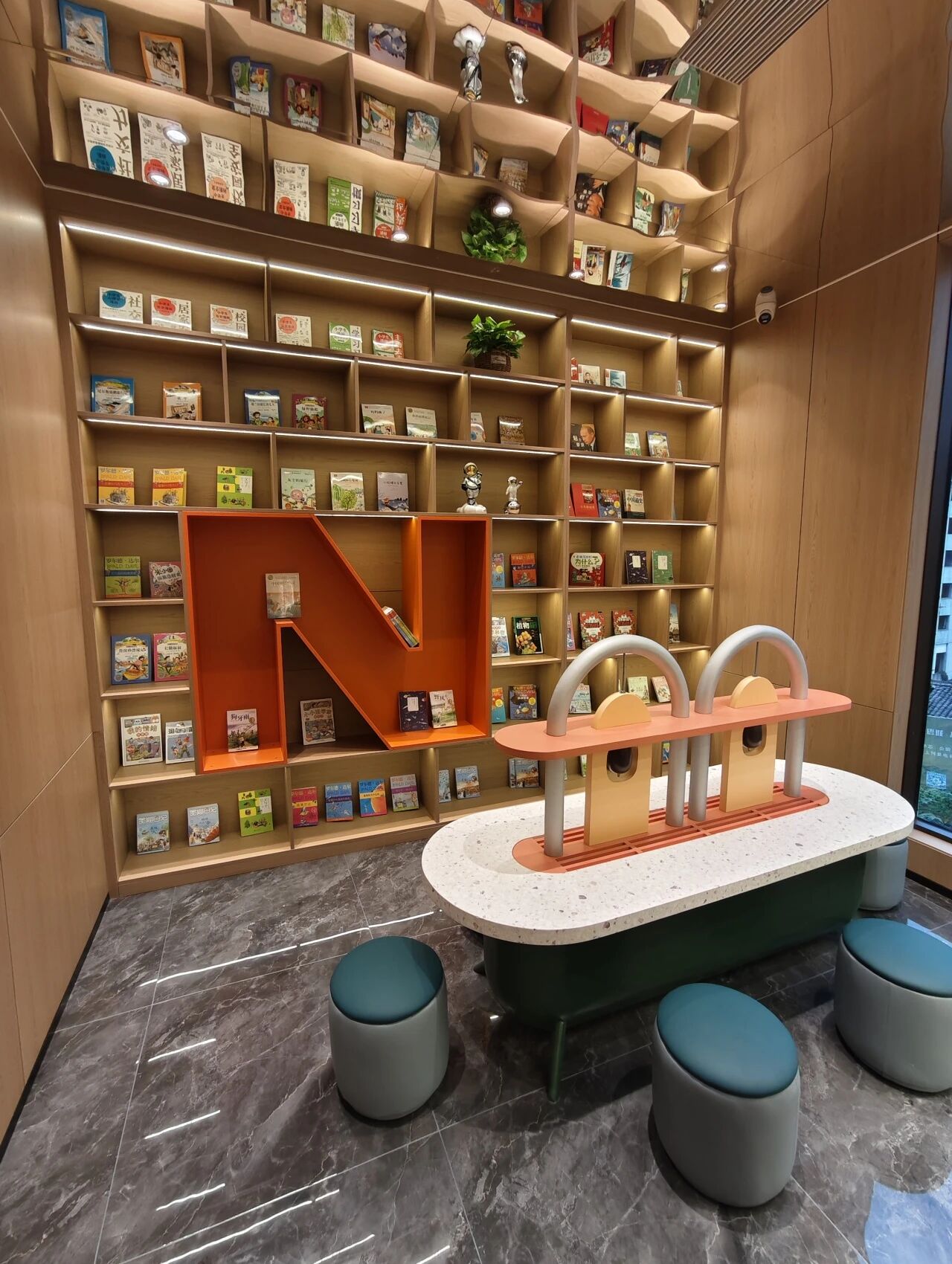 书屋特别设置的儿童阅读区,采用防磕碰圆角书桌,让孩子们在安全、温馨的环境中,自然而然地爱上阅读,探索知识的无穷乐趣。