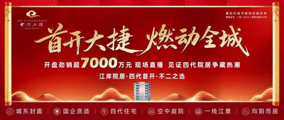 真正的好产品,从来都经得起市场的检验。2026年1月10日,云河上院首开盛典圆满举行,线上直播间人气爆棚,线下销售中心宾客云集,截至当日中午12点,劲销7000余万,138席优质房源迎来争藏热潮,用实打实的销售成绩,印证了广元人民对第四代住宅的期待与认可 。