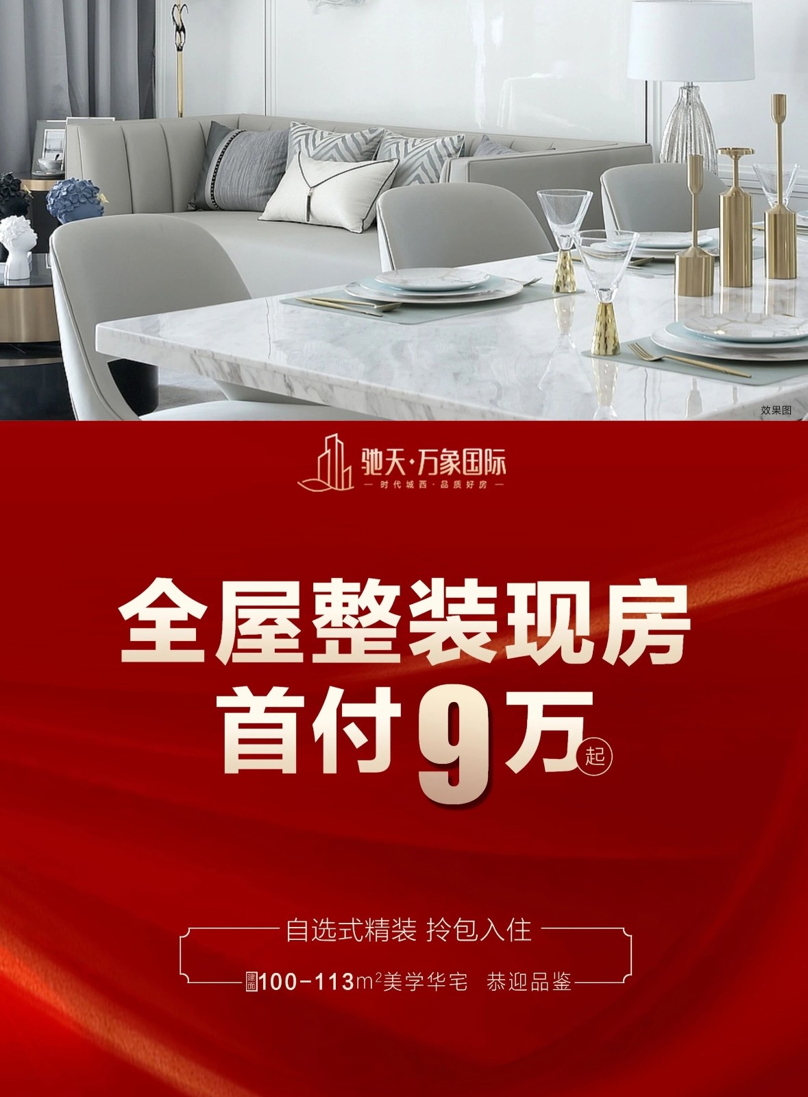 在快节奏的当下,无需为装修劳心费神,就是生活*的状态。驰天万象国际,广元*临江法式精装现房,35%高绿化率,毗邻国际商贸城、三甲医院,交通便利、配套醇熟,建面约92-122㎡瞰江户型,户户采光通透,首付9万起,把省时省力省钱的精装好房带回家,让生活从此轻松又舒适!驰天万象国际精装房样板正式亮相啦,欢迎实地看房,选房才不后悔!