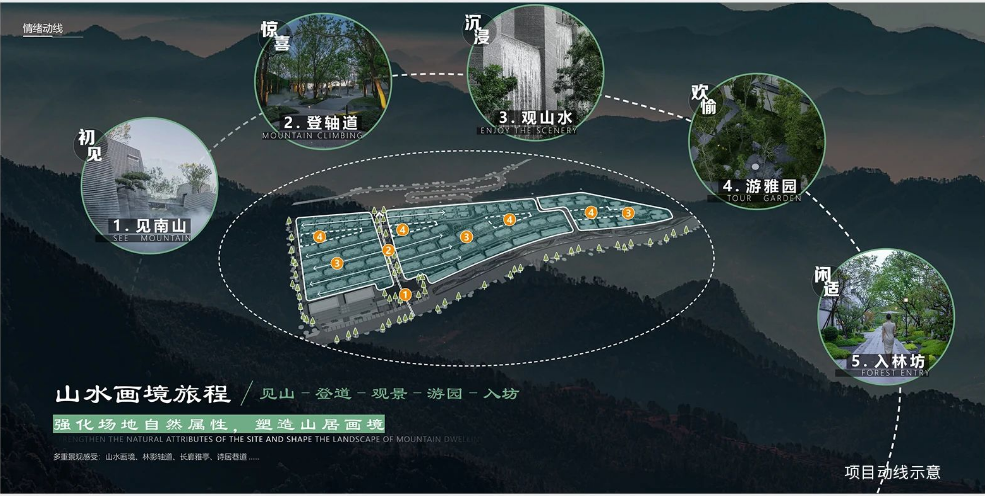城发·富南山居从园林内部的互动性、居者的体验感,以及人居与自然的完美交融出发,打造“云影盛境”、“飞廊雾栈”、“岩壁峭影”、“碧苔青林”、“流光涟漪”的五境雅景,让每一次归家都升华为一段愉悦的旅程。