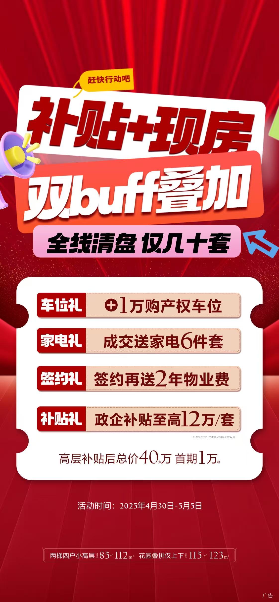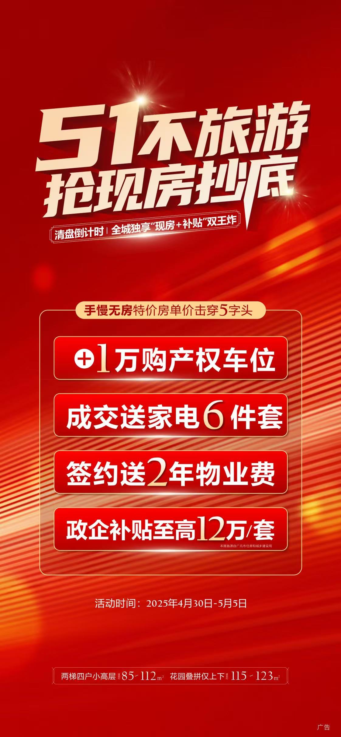宝子们!五一假期还在纠结去哪儿“撒欢”?别再人挤人看人山人海啦!阳光云玺重磅打造五一嗨购狂欢盛宴,现房清盘钜惠火力全开,成交即送价值超万元家电6件套,让你一次实现安家与焕新生活的双重梦想!这波福利堪称“王炸”,错过真的要拍断大腿!