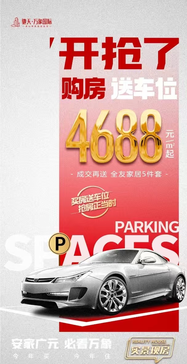 驰天万象国际年中钜惠,购房狂欢盛大开启!购房送车位(人防)震撼来袭,超值特价房低至 4688 元 / ㎡起。购房再送家装套餐,性价比爆表,数量有限,预购从速。