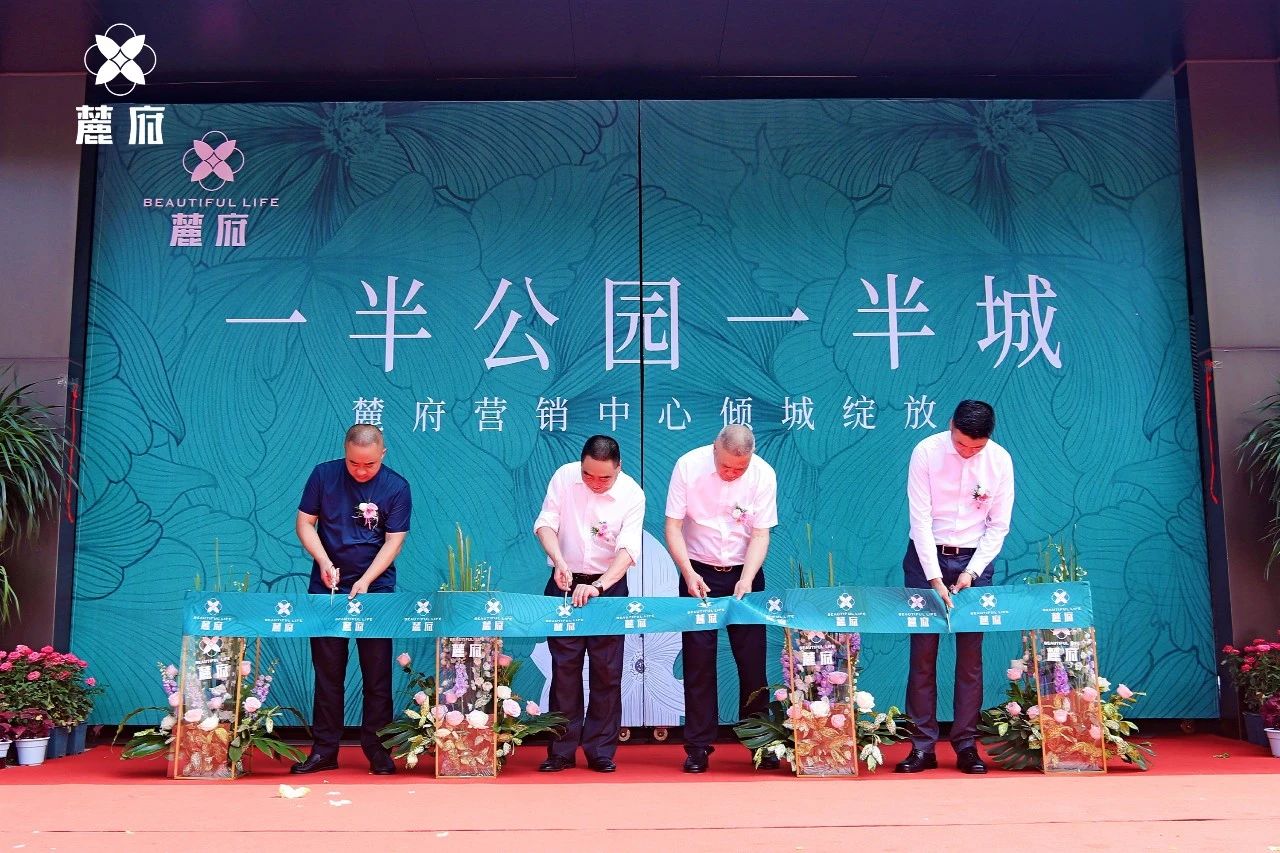 高光时刻,诸位领导在全场瞩目下,共同为营销中心开放剪彩。