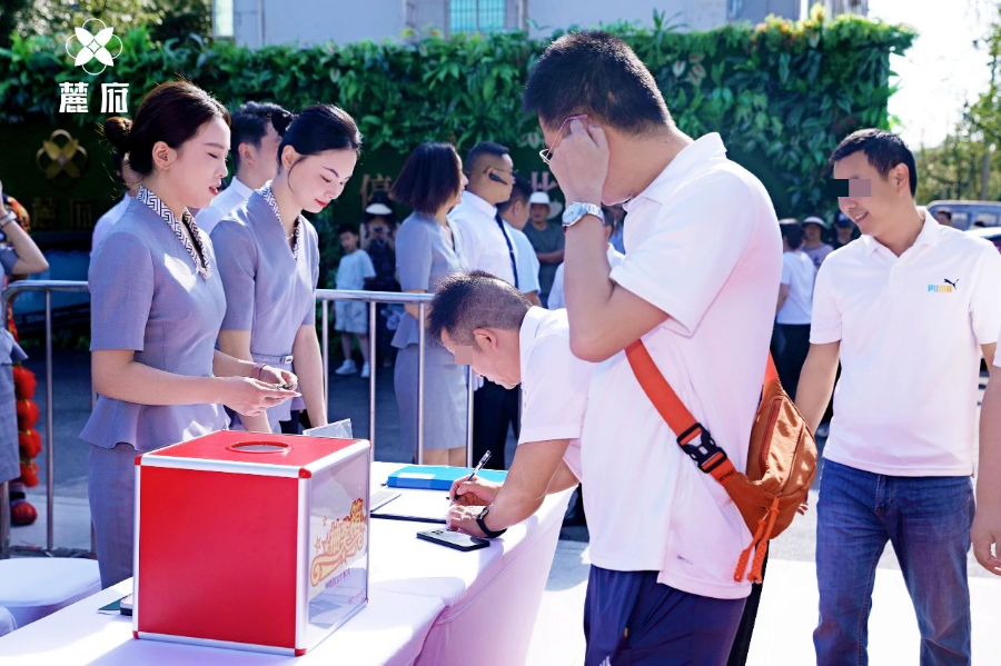 上午9点,签到仪式正式开始,身穿华美礼服的模特款款而立,热情迎接八方来宾。麓府以上宾之礼接待着每一位到场的来宾,签到中心有条不紊的进行着签到仪式,并为来宾准备了精美伴手礼。