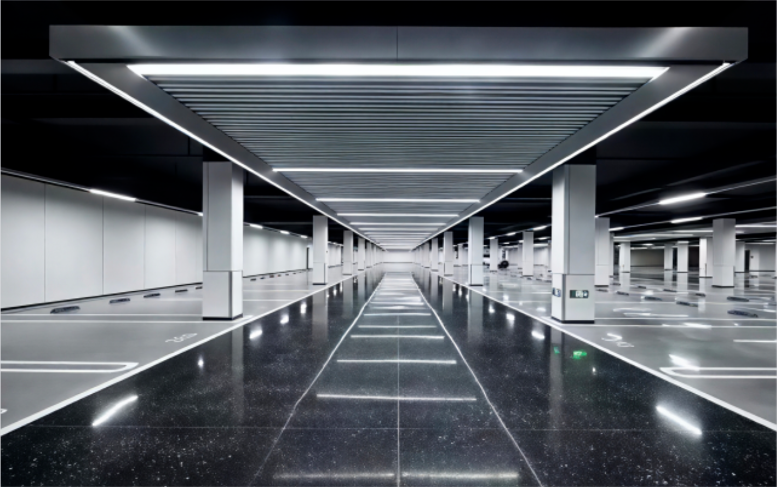 灯光科技·明亮节能:地下车道照明升级为一字型线性感应灯。灯光随车行自动点亮,不仅大幅提升照明亮度和均匀度,保障行车安全,更体现了节能环保的现代理念。