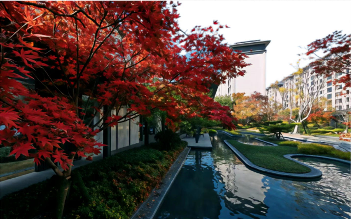 秋日私语: 我们在1#楼周边精心增植了一片乌桕林。深秋至初冬,乌桕叶将层林尽染,呈现如火如荼的绚丽景象。届时,您无需远行,在家中即可邂逅专属的"红叶节",感受秋日私语的浪漫。