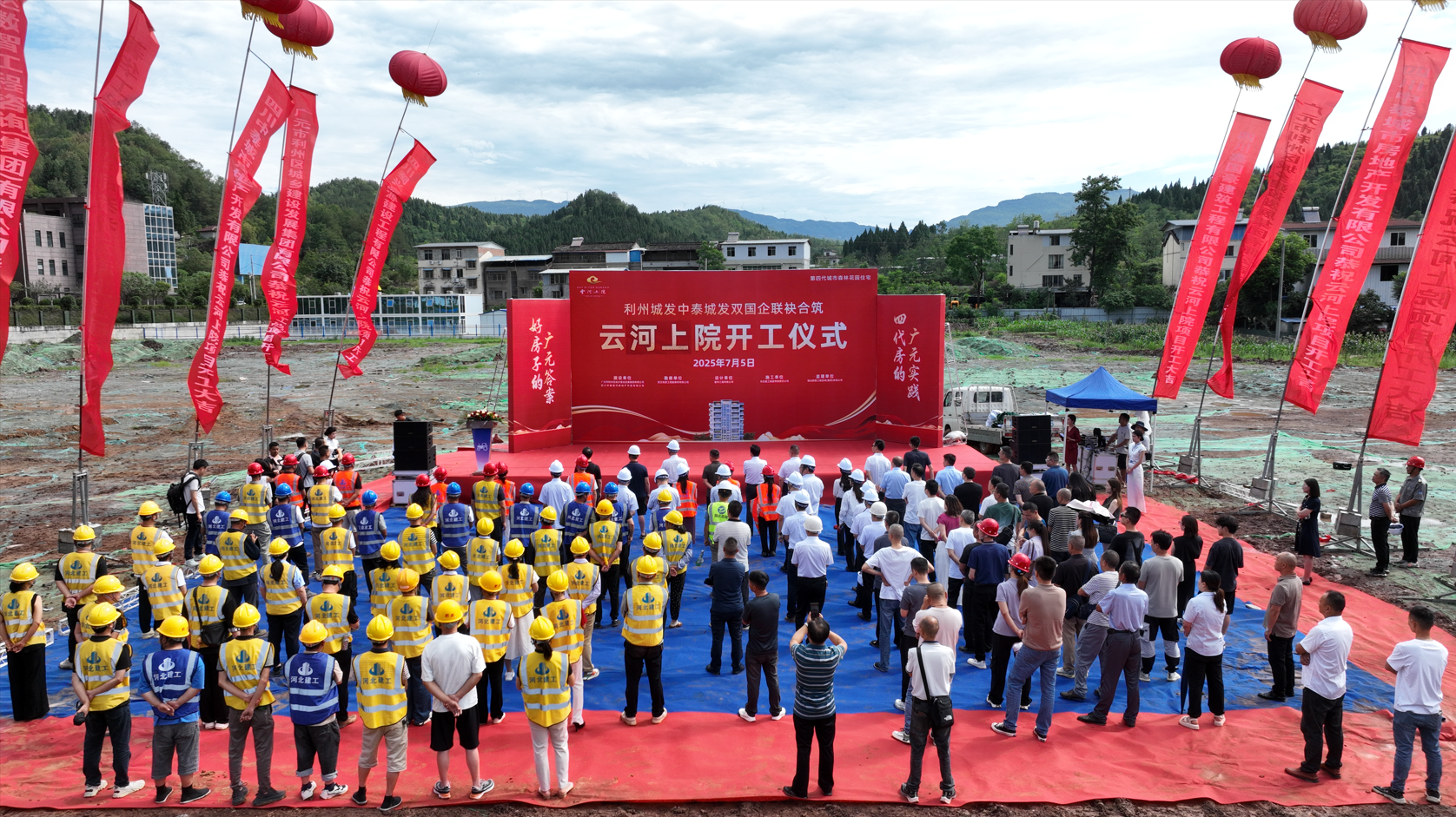 这是广元城市人居的一次重大变革!2025年7月4日上午9:56,广元市利州区城东南河北岸彩旗飘扬、鞭炮轰鸣,备受瞩目的云河上院项目开工仪式在这里盛大举行。这一具有里程碑意义的时刻,吸引了众多政府领导、行业精英、媒体朋友以及社会各界人士的共同关注,大家齐聚一堂,共同见证广元第四代城市森林花园住宅—云河上院的正式启航。