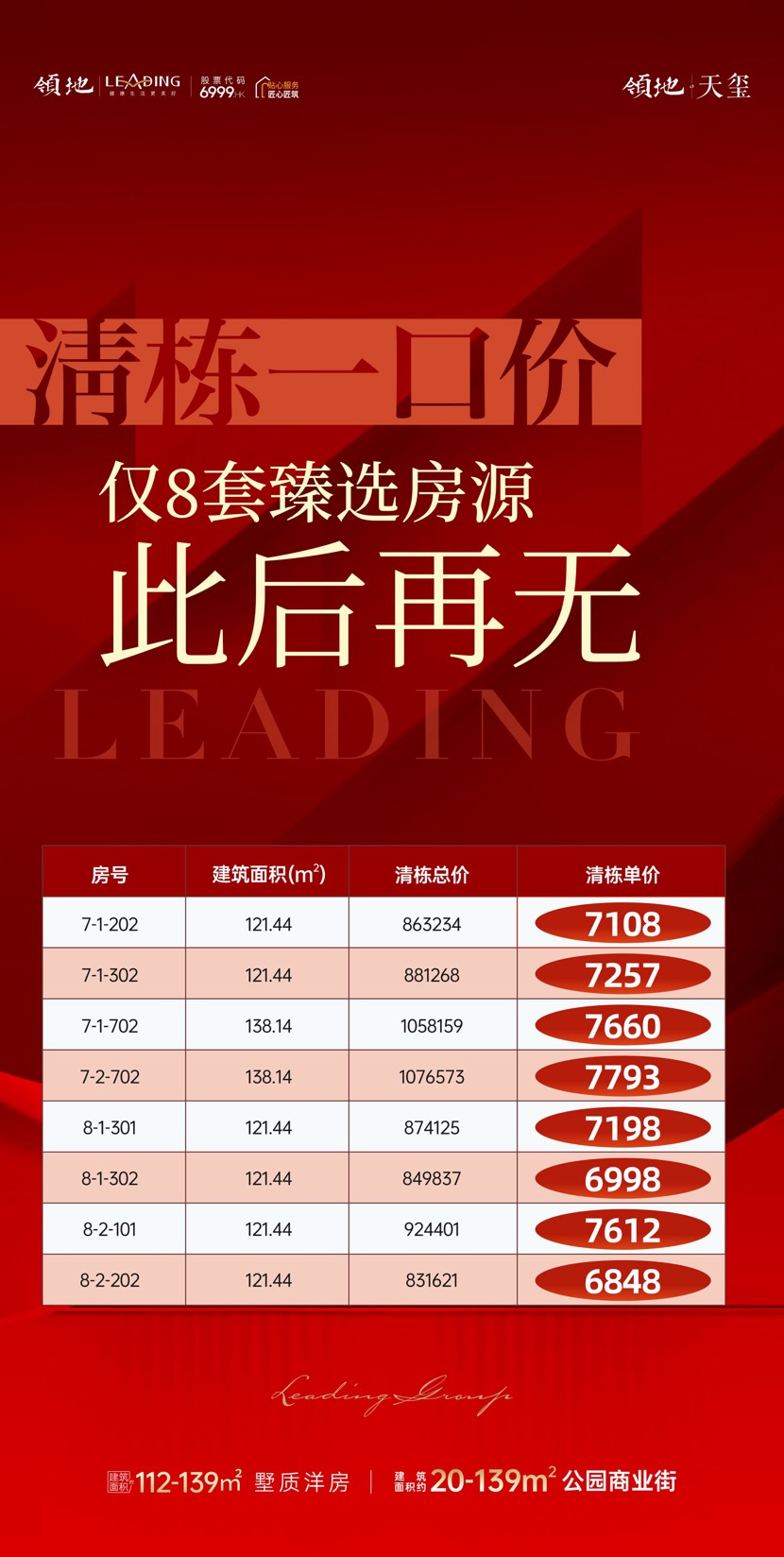 准现房清栋一口价,仅剩8套,臻选房源,现房清栋,抄底特价,单价6字头多起,欲购从速!!!