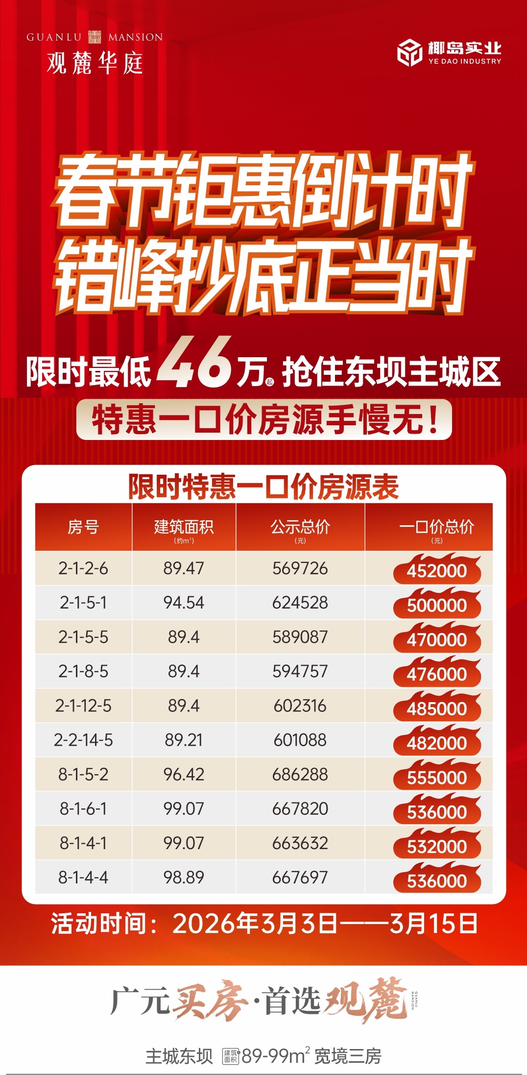 - 观麓华庭新春特惠|总价46万起,主城三房轻松安家